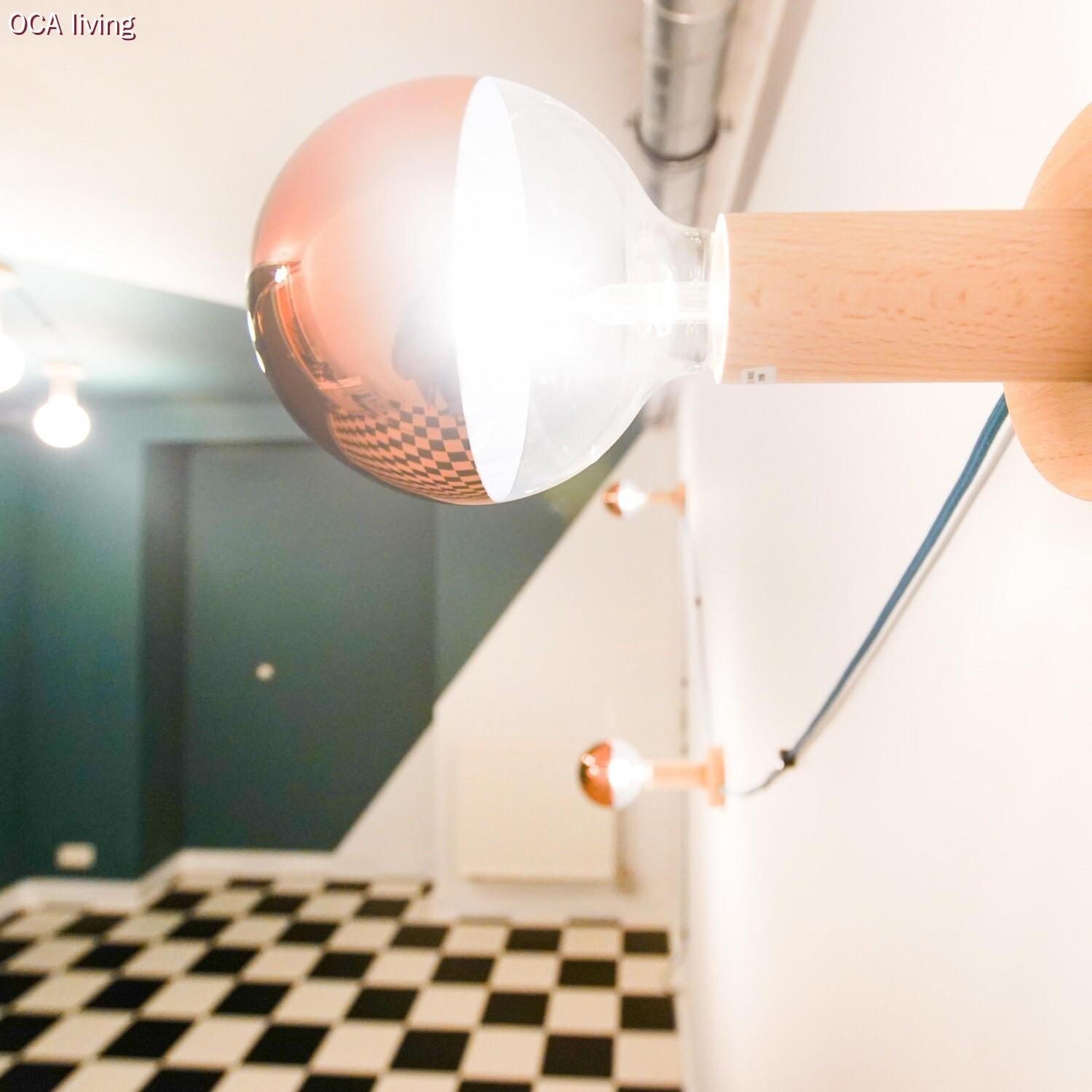 L’effet naturel est souvent utilisé en combinaison avec des éléments vintage tels que le laiton, le cuivre, le fer ou la porcelaine, tandis que le câble effet soie est généralement combiné avec du métal coloré, du chrome ou des finitions satinées.